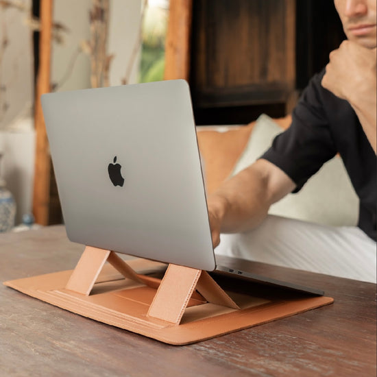 - 人間工学に基づいて背面にポップアウト式のラップトップ スタンドが付いており、快適なタイピングと姿勢の改善を実現します。